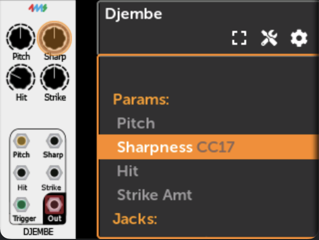 You can quickly patch a virtual jack to a panel jack by pressing and turning the rotary encoder. This is a fast way to assign a lot of jacks to the panel.