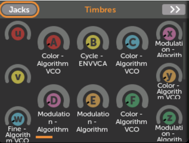 You can quickly patch a virtual jack to a panel jack by pressing and turning the rotary encoder. This is a fast way to assign a lot of jacks to the panel.